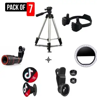 Pack Of 7 Camera Kit Tiktok 3110 Tripod 8x Lens With 36 Leds